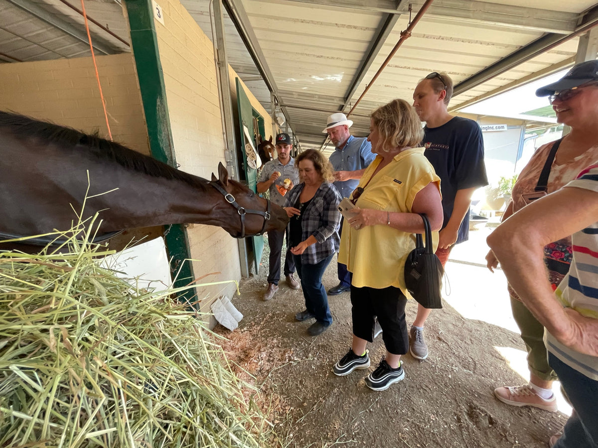 Following the morning training session, the horses will return to their barn for a bath and cool down in the back walking ring, allowing you an up-close view of their post-training demeanor. Seize the opportunity to interact with your horses on the shank and gain insights into their progress from their trainers. Post-cool down, groups of owners will be escorted back to the barn for an intimate visit with the horses in their stalls, providing the perfect occasion for up-close encounters and memorable photo opportunities.